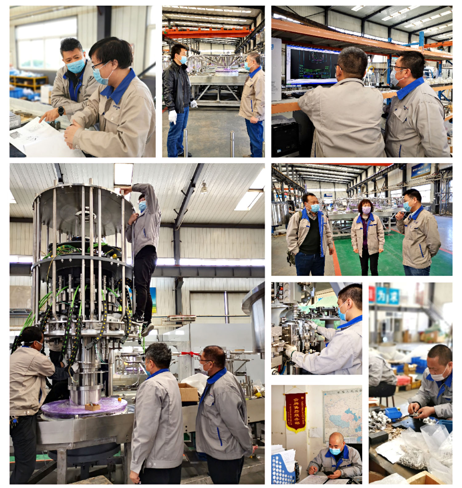 在這個春和景明,天清地明的時節(jié)里,國內(nèi)的疫情漸趨平穩(wěn),各行各業(yè)的生產(chǎn)生活也逐漸恢復。廊坊百冠,在嚴格防控疫情的前提下,把生產(chǎn)經(jīng)營推向了常態(tài)化的快車道。元氣森林的高速無菌線已進入精裝階段,國內(nèi)外的訂單均已陸續(xù)投產(chǎn)。為了趕工期,保質(zhì)量,抓進度,公司領(lǐng)導常駐一線,現(xiàn)場辦公。銷售、技術(shù)、生產(chǎn)、質(zhì)檢、售后、行政等各個系統(tǒng)全部調(diào)動起來,圍繞客戶的訂單統(tǒng)籌兼顧,全力以赴,進行了緊鑼密鼓的調(diào)度安排,開啟了熱火朝天的工作模式。